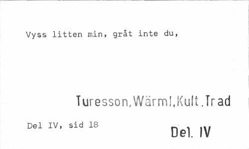 //// Vyss litten min, gråt inte du, //// Turesson, Wärm I, Kult .Trad //// Del IV, sid 18 • _ 1%l //// Del. IV ////