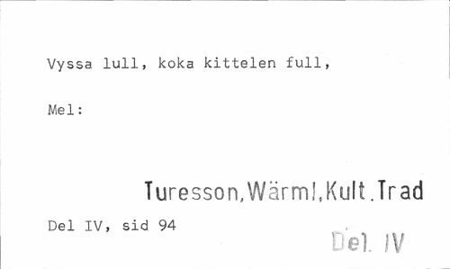 //// Vyssa lull, koka kittelen full, Mel: //// Turesson, Wärml, Kult. Trad //// Del IV, sid 94 //// Del. IV ////