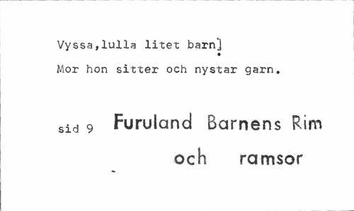 //// Vyssa»lulla litet barnj //// Mor hon sitter och nystar garn. //// sid 9 Furuland Barnens Rim //// och ramsor ////