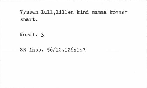 //// Vyssan lull,lillen kind mamma kommer snart. //// Nordl. 3 //// SR insp. 56/10.126:1»3 ////