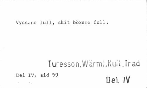//// Vyssane lull, skit böxera full, //// Turesson, Wärml, Kult. Tr ad //// Del IV, sid 59 //// Del. IV ////