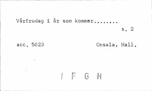 //// Vårfrudag i år som kommer... //// s. 2 //// acc. 5823 Onsala, Hall. //// I F G H ////