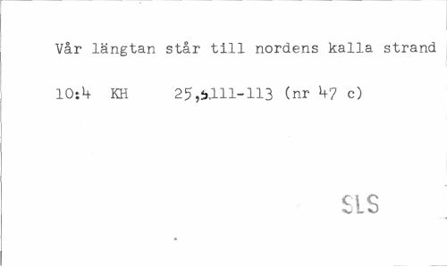 //// Vår längtan står till nordens kalla strand 10:H- KH 25,^111-113 (nr c) //// SLS ////