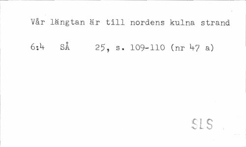 //// Vår längtan är till nordens kulna strand SÅ 25, s. 109-110 (nr V7 a) //// SLS ////