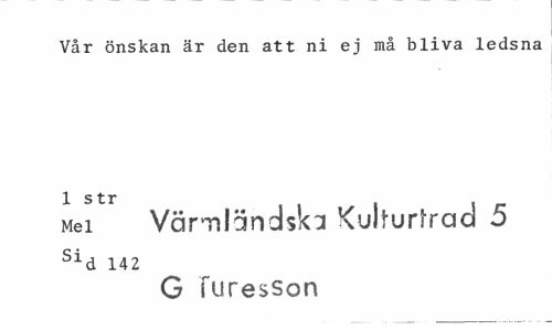 //// Vår önskan är den att ni ej må bliva ledsna 1 str //// Mei Värmländska Kulfurlrad 5 //// Sid 142 //// G furesSon ////