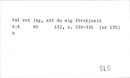 //// Val vet jag, att du mig förskjutit //// 4:4 BO 532, s. 330-331 (nr 195) //// N //// SLS ////