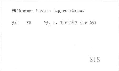 //// Välkommen havets tappre männer //// KH 25, s. 1^6-1^7 (nr 65) //// SIS ////