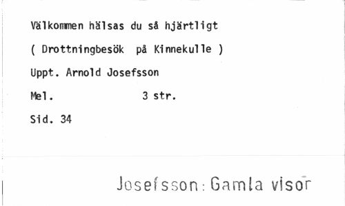 //// Välkommen hälsas du så hjärtligt ( Drottningbesök på Kinnekulle ) Uppt. Arnold Josefsson Mel. 3 str. //// Sid. 34 //// Josefsson: Gamla visor ////