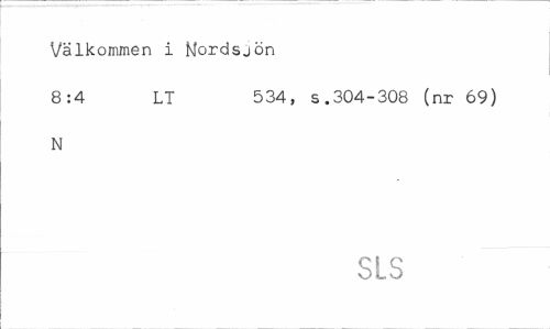 //// Välkommen i Nordsjön //// 8:4 LT 534, s.304-308 (nr 69) //// N //// SLS ////