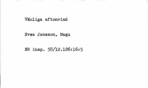 //// Vänliga aftonvind Svea Jansson, Nagu SR insp. 58/12.126:16:5 ////
