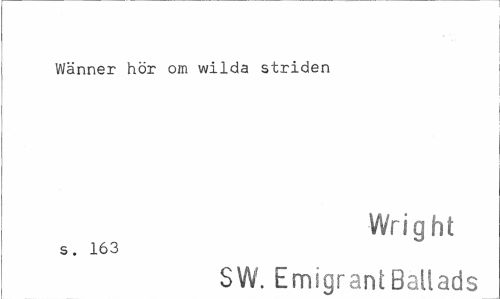 //// Wänner hör om wilda striden //// Wright //// s. 163 //// SW. Emigrant Ballads ////