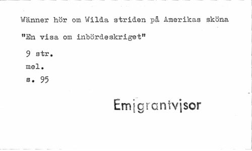 //// Wänner hör om Wilda striden på Amerikas sköna //// "En visa om inbördeskriget" //// 9 str. mel. s. 95 //// Emigrcntvisor ////