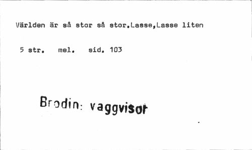 //// Världen är så stor så stor.Lasse,Lasse liten 5 str. mel. sid. 103 //// Brodin: vaggvisor ////