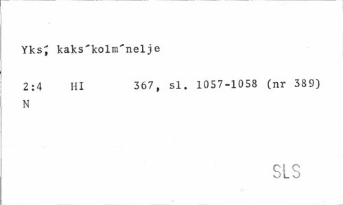 //// Yks; kaks'kolm'nelje //// 2:4 Hl 367, si. 1057-1058 (nr 389) //// N //// SLS ////