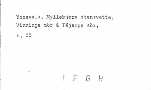 //// Ynnsvala, Myllebjera stensvatta, Vinninge möx å Täjarpe sör, //// s. 55 //// f P G H ////