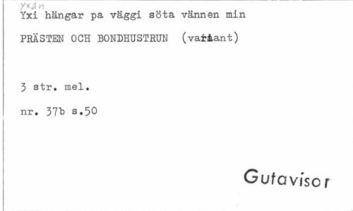 //// / "un r i //// Yxi hangar pa väggi söta vännen min PRÄSTEN OCH BONDHUSTRUN (varåant) //// 5 str, mel. nr. 57b s.50 //// O uf o visor ////