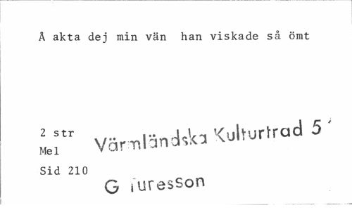 //// Å akta dej min vän han viskade så ömt //// LJtr VamiandAi Kulturtrad 5 ' //// Sid 210 //// G iuresson ////