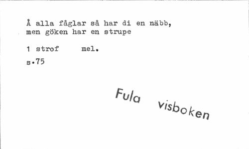 //// Å alla fåglar så har di en näbb, men göken har en strupe //// 1 strof mel. s.75 //// Fu/q //// Vlsb0ken ////