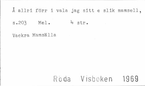 //// Å allri förr i vala jag sitt e slik mamsell, s.203 Mel. b str. //// Vackra Mamsälla //// Röda Visboken 1969 ////