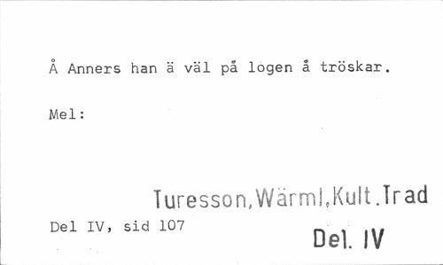 //// Å Anners han ä väl på logen å tröskar. Mel: //// Turesson, Wärml.Kult.Trad //// Del IV, sid 107 //// Del. IV ////