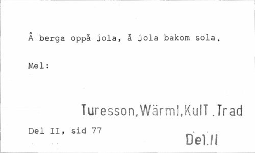 //// Å berga oppå jola, å jola bakom sola. Mel: //// Turesson,Wärml.KulT .Trad //// Del II, sid 77 . . //// Del./! ////