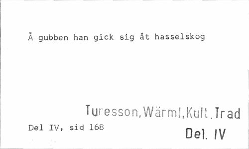 //// Å gubben han gick sig åt hasselskog //// Turesson.Wärml, Kult. Träd //// Del IV, sid 168 jy ////