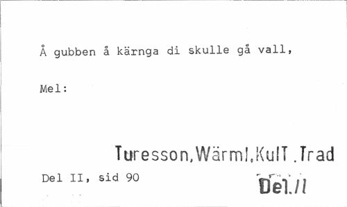 //// Å gubben å kärnga di skulle gå vall, Mel: //// Ttresson,Wärmi.KulT .Trad //// Del II, sid 90 WV .» //// Del/1 ////