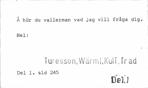 //// Å hör du vallerman vad jag vill fråga dig, Mel: //// » //// Turesson.Wärml.KulT.Trad //// Del I, sid 245 //// DelJ ////