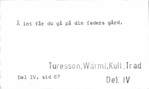 //// Å int får du gå på din faders gård, //// Turesson, Wärml, Kult.Tr ad //// Del IV, sid 87 Del jy ////