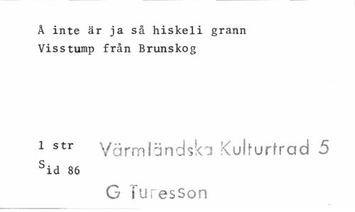 //// Å inte är ja så hiskeli grann Visstump från Brunskog //// i str Värmländska Kulturtrad 5 Sid 86 //// G Turesson ////