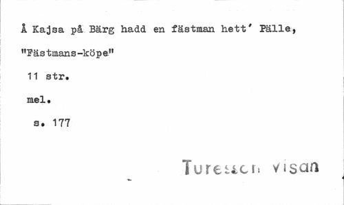 //// Å Kajsa på Bärg hadd en fästman hett' Pälle, "Pästmans-köpe" 11 str. mel* s. 177 //// Turenen vssaa ////