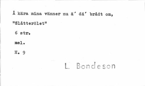 //// Å kära mina vänner nu ä' dä' brådt om, "Slåtterölet" 6 stiri. mel. H. 9 //// j L Bondeson ////