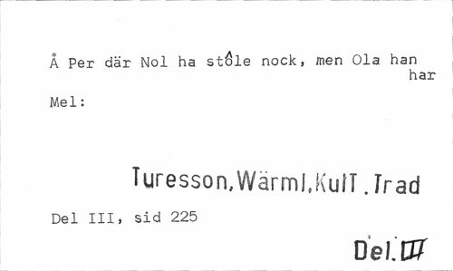 //// Å Per där Nol ha stéle nock, men Ola han //// har //// Mel: //// Turesson, Wärml.KulT. Irad //// Del III, sid 225 //// Del. UT ////