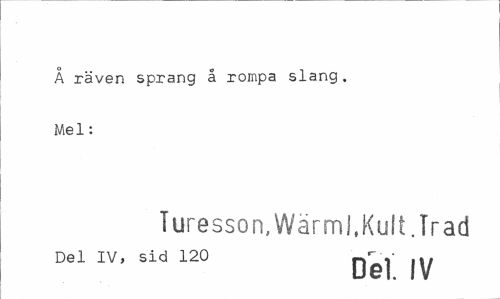 //// Å räven sprang å rompa slang. Mel: //// Turesson, WärmJ,Kult. Trad //// Del IV, sid 120 p1^ y ////