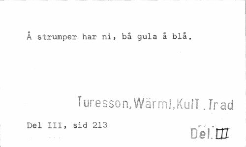 //// Å strumper har ni, bå gula å blå. //// Turesson,WärmJ,KufT. Jr ad //// Del III, sid 213 , ._„ //// Dei. nr ////