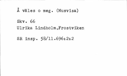 //// Å väles o meg. (Musvisa) Skv. 66 //// Ulrika Lindholm,Frostviken SR insp. 58/11.696:2s2 ////