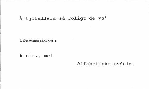 //// Å tjofallera så roligt de va' //// Lösémanicken 6 str., mel //// Alfabetiska avdeln. ////
