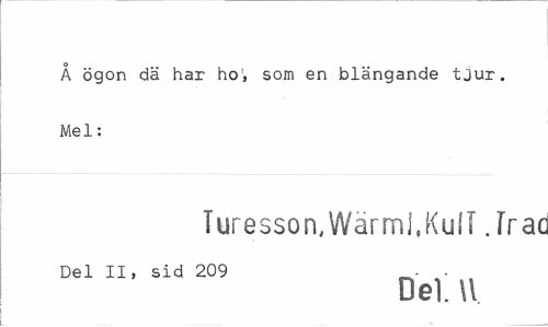 //// Å ögon dä har ho;, som en blängande tjur. Mel: //// Turesson,Wärml.KulT. Trac //// Del II, sid 209 - . //// Del. W ////