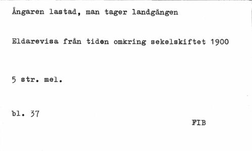 //// Ångaren lastad, man tager landgången Eldarevisa från tiden omkring sekelskiftet 1900 //// 5 str. mel. bl. 37 //// FIB ////