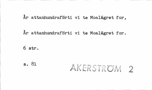 //// År attanhundraförti vi te Moalägret for, År attanhundraförti vi te Moalägret for. 6 str. //// ® • R t/' F" n C T k A ä //// A s\ l K O i K O/ Vi Z ////
