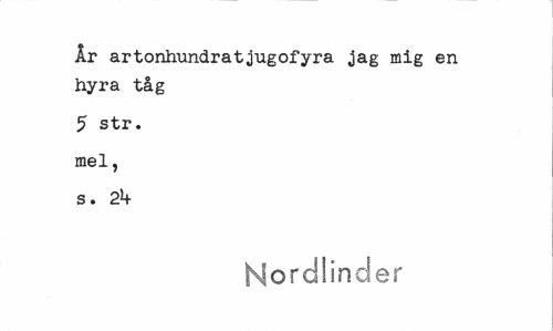 //// År artonhundratjugofyra jag mig en hyra tåg //// 5 str. //// mel, //// s. 2b //// Nordlinder ////