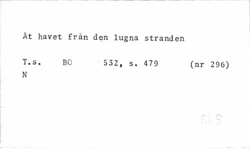 //// Ät havet från den lugna stranden //// T.s. BO 532, s. 479 (nr 296) //// N ////
