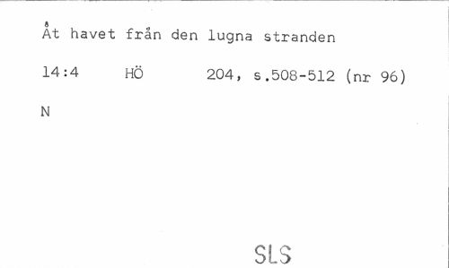 //// i „ //// At havet fran den lugna stranden //// 14:4 HÖ 204, s.508-512 (nr 96) //// N //// SLS ////
