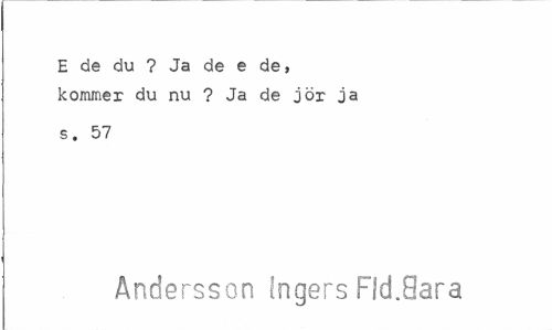 //// E de du ? Ja de e de, kommer du nu ? Ja de jör ja //// s. 57 //// Andersson Ingers Fld.8ara ////