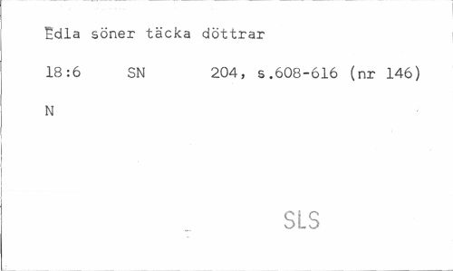 //// Edla söner täcka döttrar //// 18:6 SN 204, s.608-616 (nr 146) //// N //// SLS ////