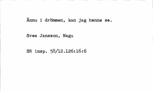 //// Ännu i drömmen, kan jag henne se. Svea Jansson, Nagu SR insp. 58/12.126:16:6 ////