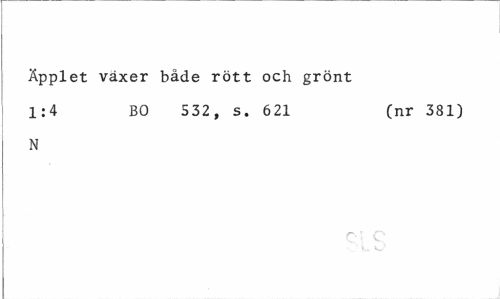 //// Äpplet växer både rött och grönt //// 1:4 BO 532, s. 621 (nr 381) //// N ////