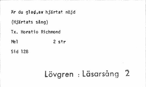 //// Är du glasUav hjärtat nöjd (Hjärtats sång) Tx. Horatio Richmond Mel 2 str //// Sid 128 //// Lövgren : Läsarsång 2 ////