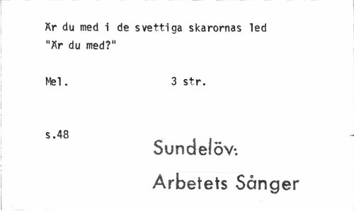//// Kr du med i de svettiga skarornas led "Är du med?" //// Mel. 3 str. //// s .48 //// Sun del öv-. Arbetets Sånger ////