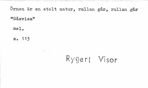 //// Örnen är en stolt natur, rullan går, rullan går "Gåsvisa" mel, s. 113 //// Ryg ert Visor ////